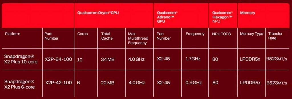 Ficha técnica: Snapdragon X2 Plus