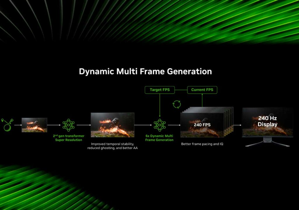 Dynamic Multi Frame Generation 6X: hasta 240+ FPS con path tracing