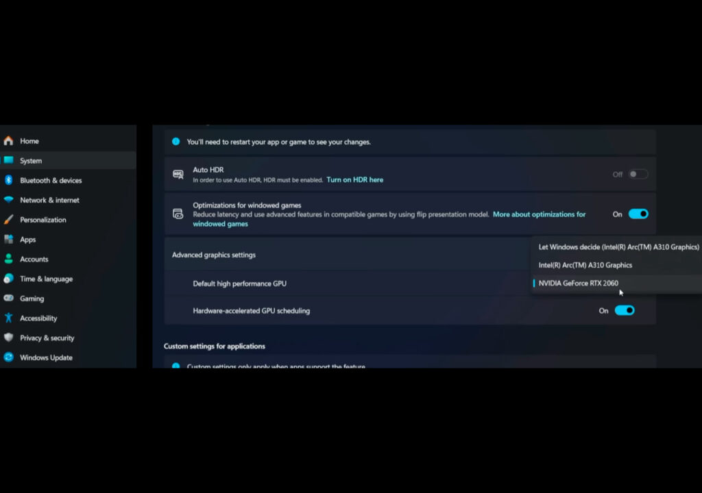 - Ve a Configuración → Sistema → Pantalla → Configuración de gráficos