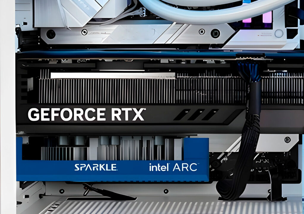 Un CPU de gama media es suficiente, como el Intel i5-12400F, (o 13400F) que proporciona un excelente rendimiento por su precio y no será un cuello de botella para el flujo de datos entre las dos tarjetas gráficas. Una fuente de alimentación de al menos 550 vatios es un requisito no negociable para alimentar de forma segura dos GPUs, junto con el resto del sistema, evitando apagones o inestabilidades. Finalmente, un Windows 10 o 11 completamente actualizado garantiza tener los controladores de plataforma y las funciones de seguridad más recientes, necesarias para la compatibilidad con hardware nuevo, especialmente con las GPU Intel Arc.