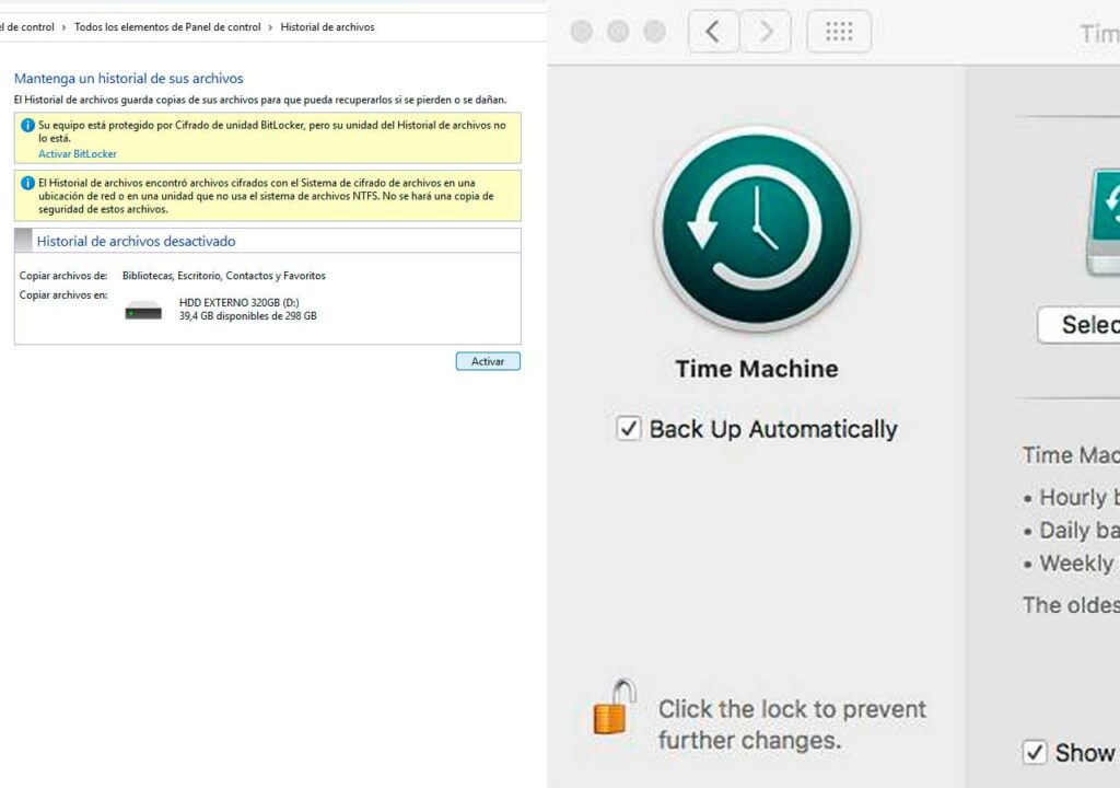 • En Mac: Time Machine es, sencillamente, la mejor herramienta de consumo creada jamás. Solo conecta un disco y olvídate.